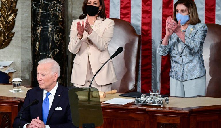 Esta es la primera vez que un presidente estadounidense da su discurso ante una sesión bicameral flanqueado por dos mujeres, la vicepresidenta Kamala Harris y la presidenta de la Cámara Baja, Nancy Pelosi.