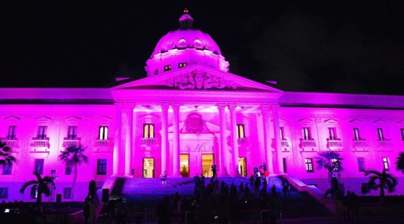Las luces color rosado se encienden en el Palacio Nacional por el mes de la sensibilización cáncer de mama