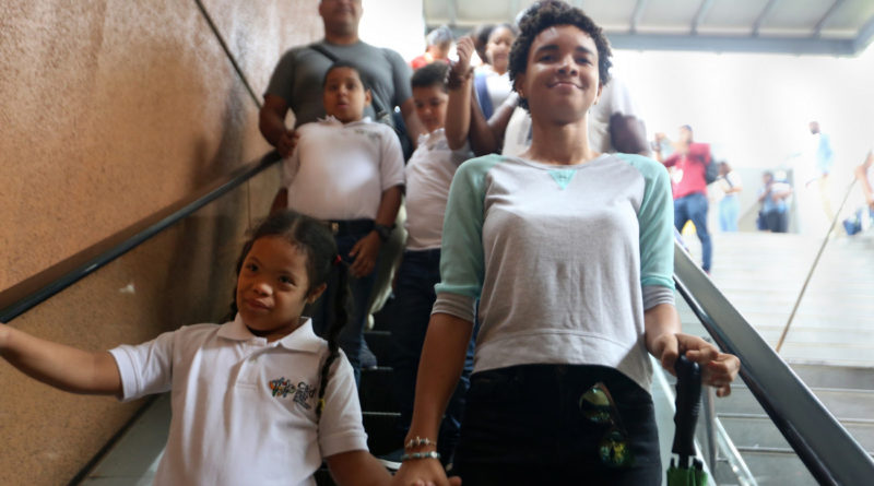 Niños y niñas del Centro de Atención Integral para la Discapacidad (CAID), recinto Santo Domingo Oeste, recorrieron juntos a sus padres las instalaciones del Metro y el Teleférico de Santo Domingo.